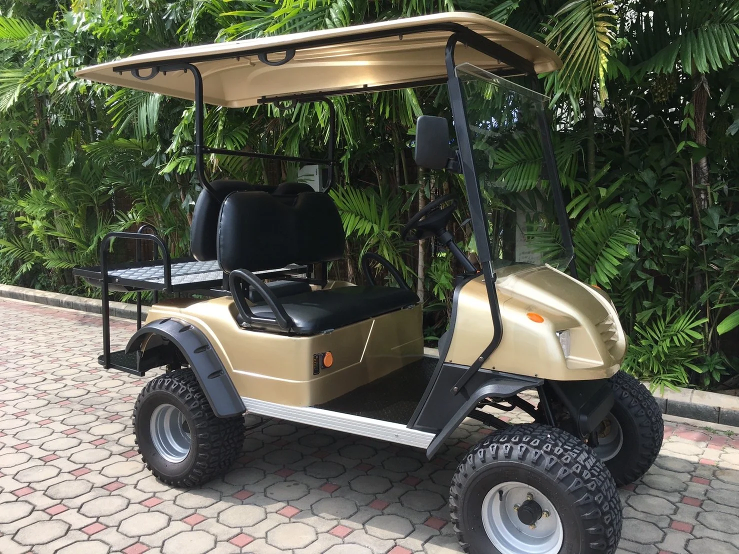With one of our lifted 2+2 seat carts you can still drive through almost every flood in Nichada, but with just 2 front facing seats and 2 additional rear facing seats. This cart is great for smaller families or someone that may not have a lot of space for parking.